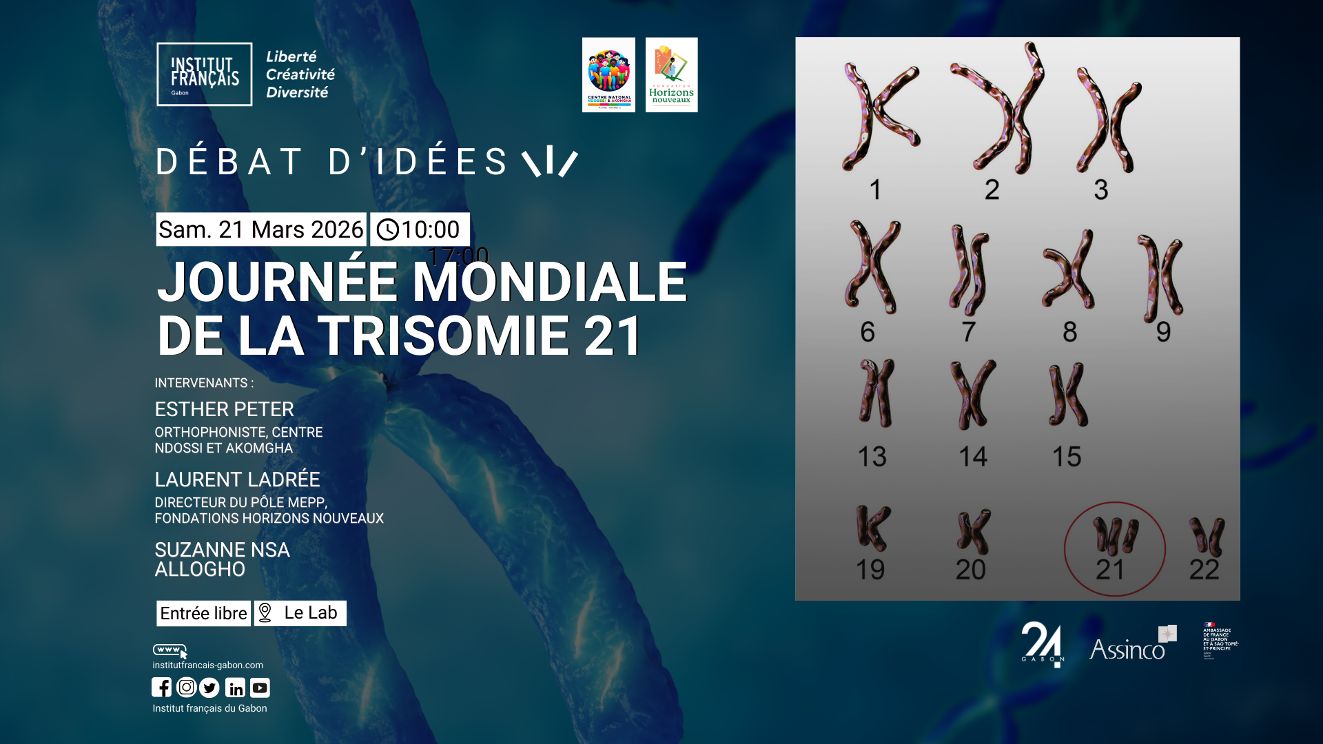 À l’occasion de la Journée mondiale de la trisomie 21, l’Institut français du Gabon accueille une rencontre d’échange et de sensibilisation autour du syndrome de Down. Au Gabon, le manque d’information et les tabous contribuent encore à l’isolement des personnes concernées et de leurs familles. Ce temps de dialogue vise à mieux comprendre la trisomie 21, déconstruire les préjugés et promouvoir une société plus inclusive.
